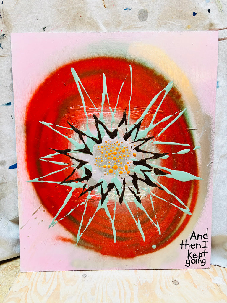 most of the pieces are done on wood salvaged from remodeling projects in OJAI, CALIFORNIA